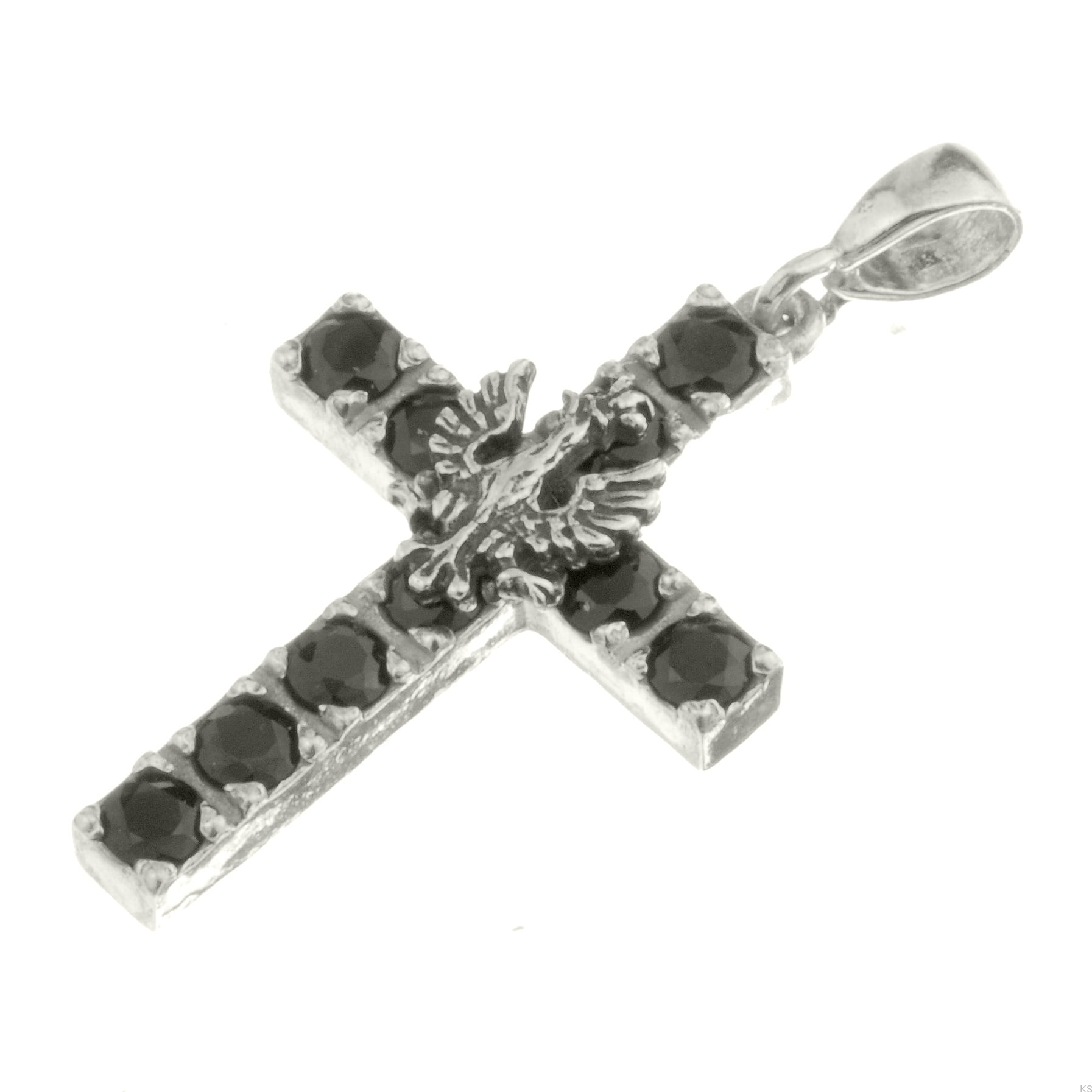 Srebrny krzyżyk patriotyczny 925 z orłem i czarnymi cyrkoniami – symbol powstania styczniowego