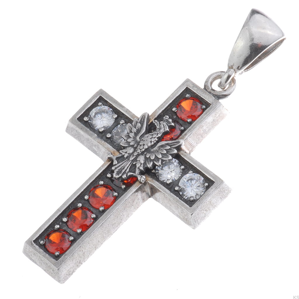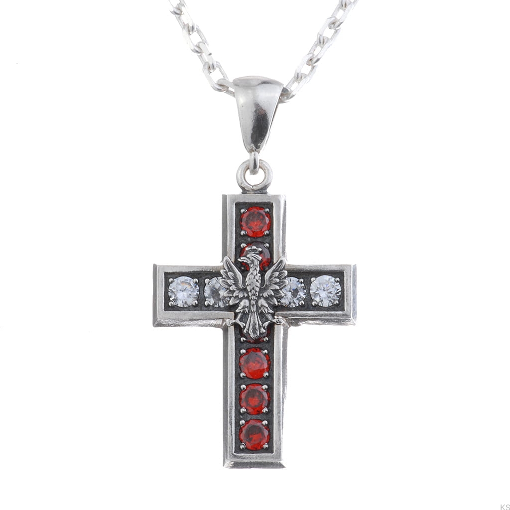 Srebrny krzyżyk patriotyczny z orłem i cyrkoniami 925 – prezent na Święto Niepodległości